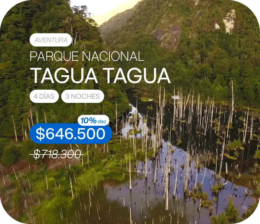 Explora el Parque Tagua Tagua en un trekking a través de un bosque siempre verde. Camina entre alerces milenarios y coihues, mientras el agua y las montañas te envuelven en un paisaje de vida y renovación.